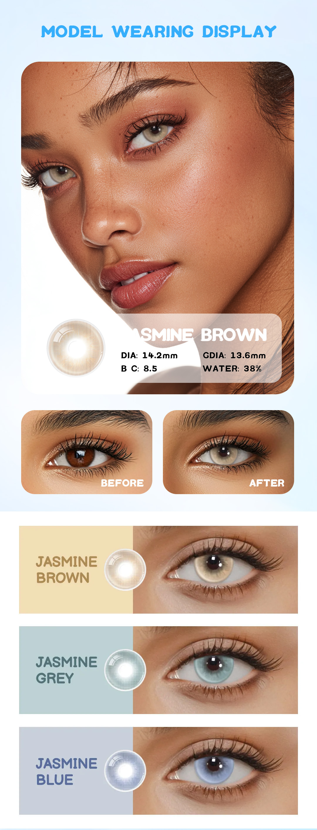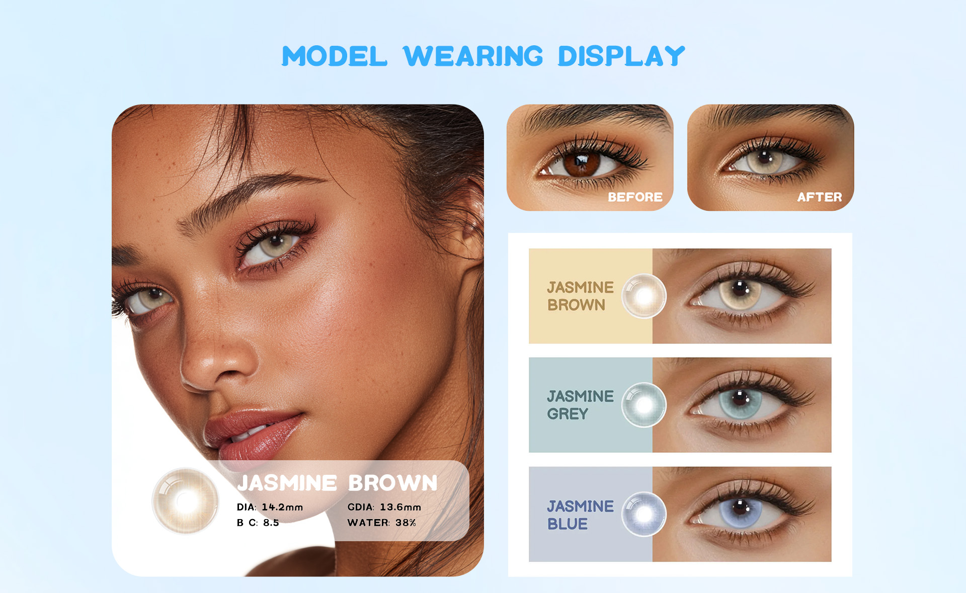 • Natural Brown Tint: Adds a soft, realistic brown color to your eyes.