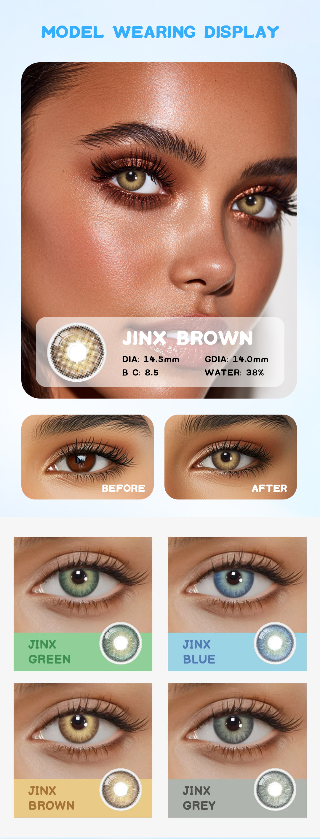 Verwandeln Sie Ihren Look mit den Jinx Brown Kontaktlinsen, die entwickelt wurden, um Ihre Augen mit einem reichen und warmen Braunton zu vergrößern. Diese Linsen betonen Ihre natürliche Schönheit und verleihen einen Hauch von Tiefe und Anziehungskraft, was sie perfekt für jeden Anlass macht. Umarmen Sie den Charme von Jinx Brown und lassen Sie Ihre Augen Bewunderer mit ihrem fesselnden Reiz anziehen! ```