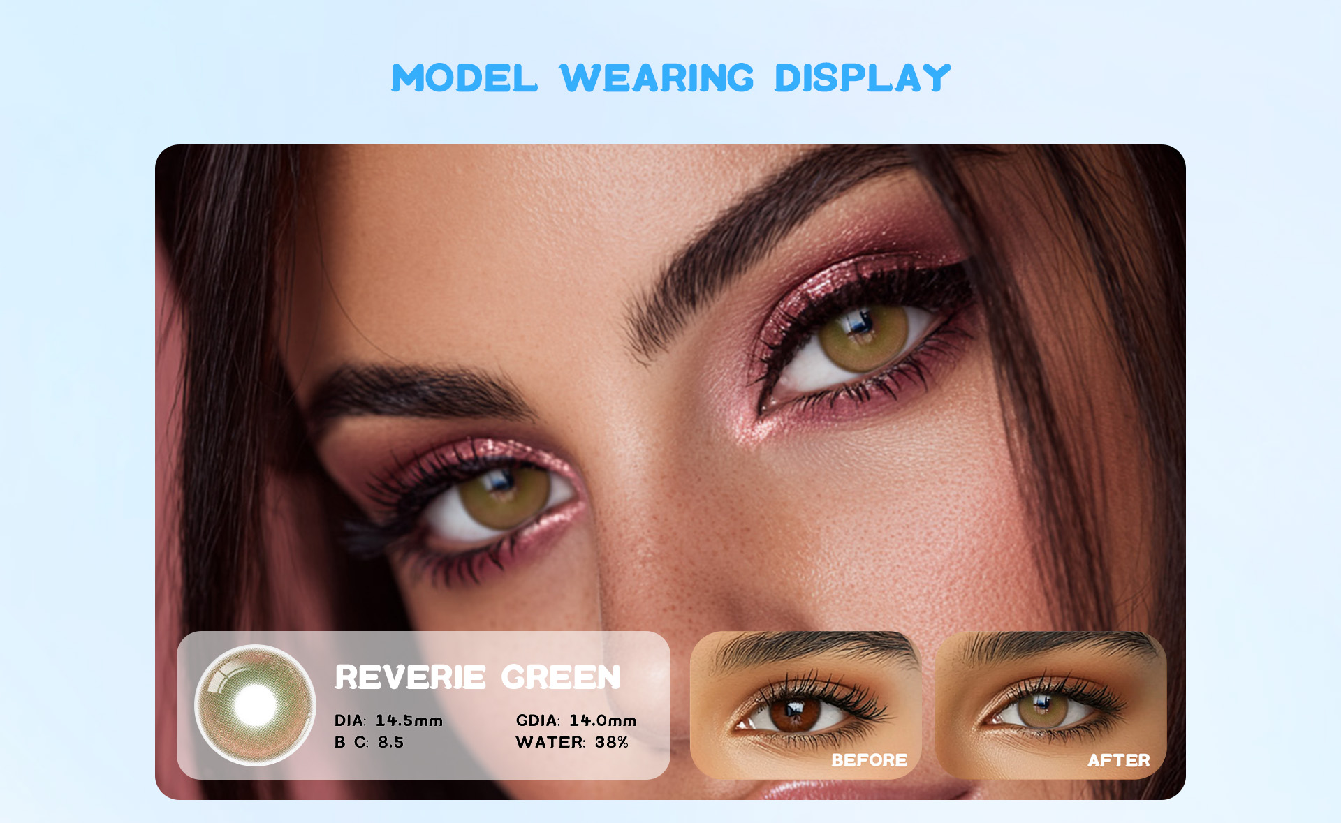 Eyemua Reverie Green lenses bring a misty green tint with all-day moisture and breathability.