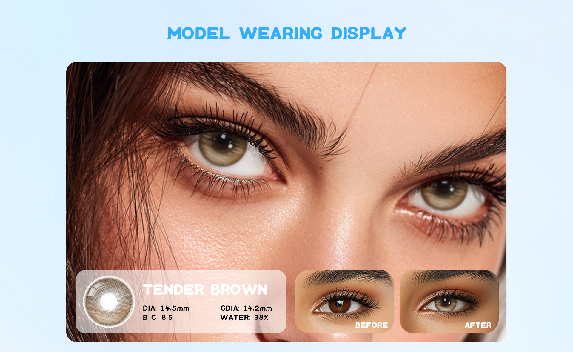 These lenses softly enhance your natural eye color, giving you a warm, inviting look that suits any setting—from daily wear to special moments.
