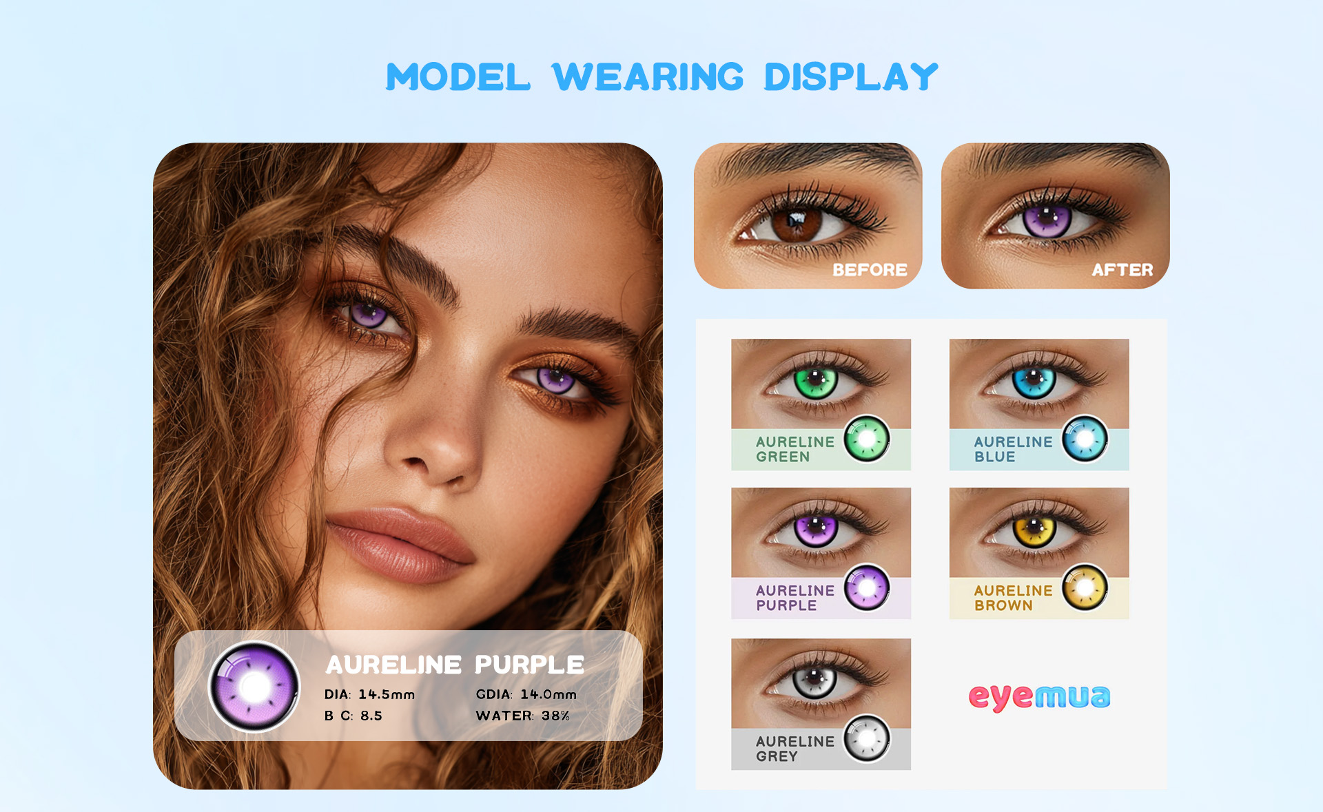 Le lenti Eyemua Aureline Purple mostrano una profonda tonalità di viola incantato che aggiunge un tocco mistico ai tuoi occhi mantenendoli confortevoli e freschi.