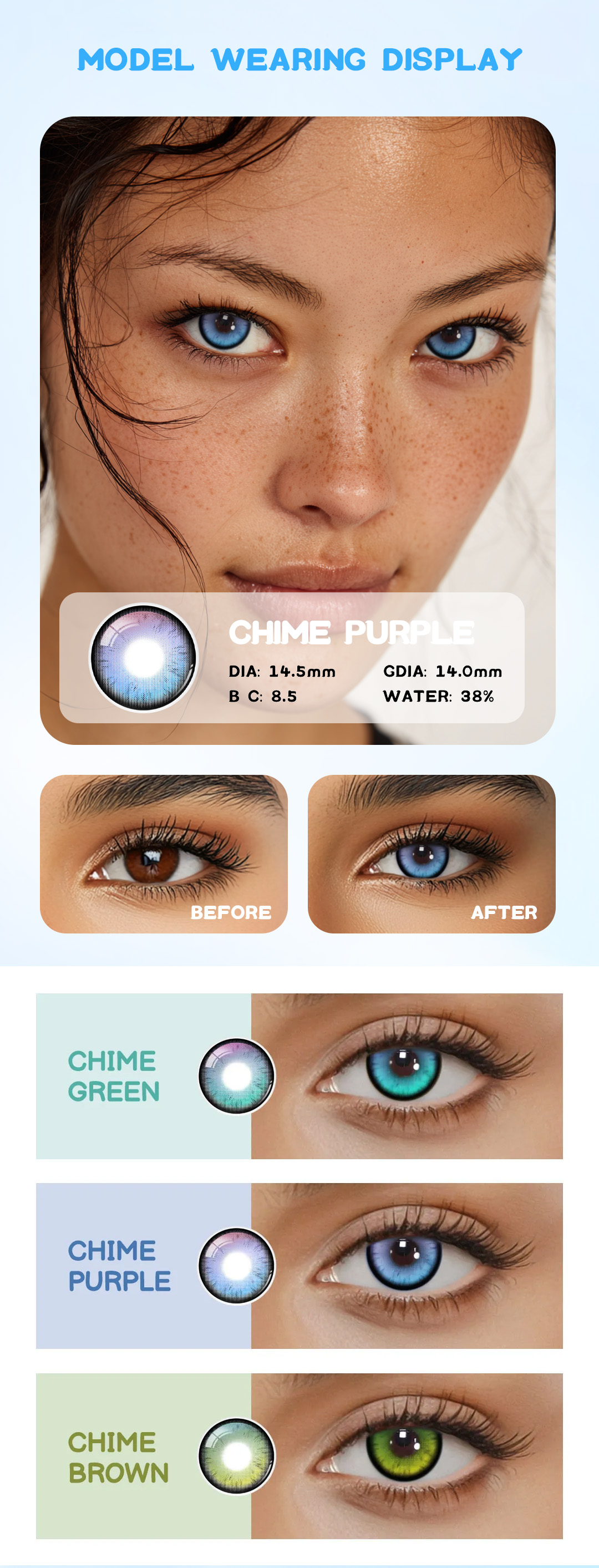 Le lenti Eyemua Chime Purple mescolano toni viola profondi con motivi iris luminosi per un aspetto che è misterioso, audace e accattivante.