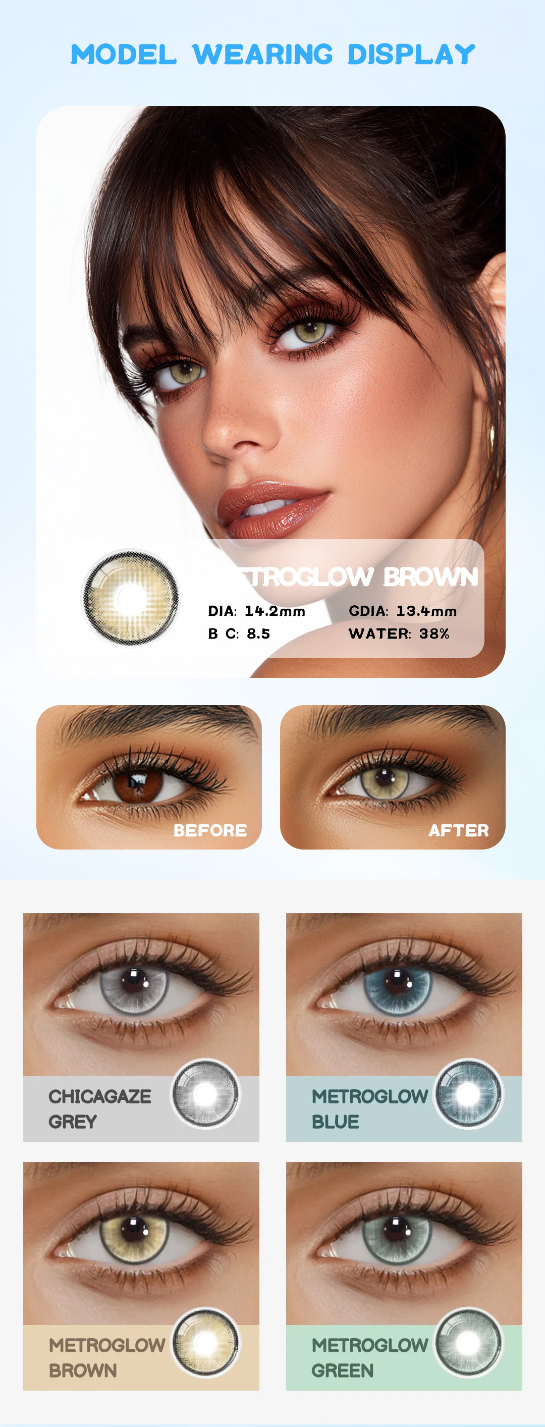 Trasforma il tuo look con le lenti a contatto MetroGlow Brown, progettate per ingrandire i tuoi occhi con una ricca e calda tonalità di marrone. Queste lenti esaltano la tua bellezza naturale aggiungendo un tocco di profondità e fascino, rendendole perfette per ogni occasione. Abbraccia il fascino di MetroGlow Brown e lascia che i tuoi occhi attirino ammiratori con il loro fascino coinvolgente!