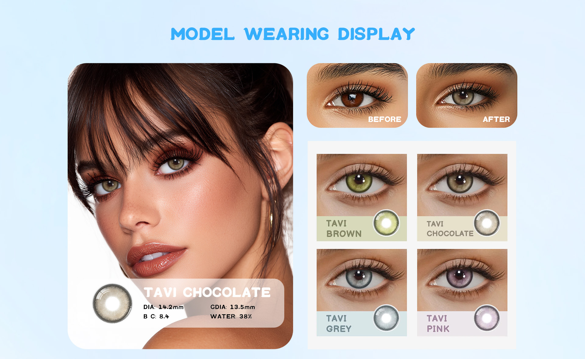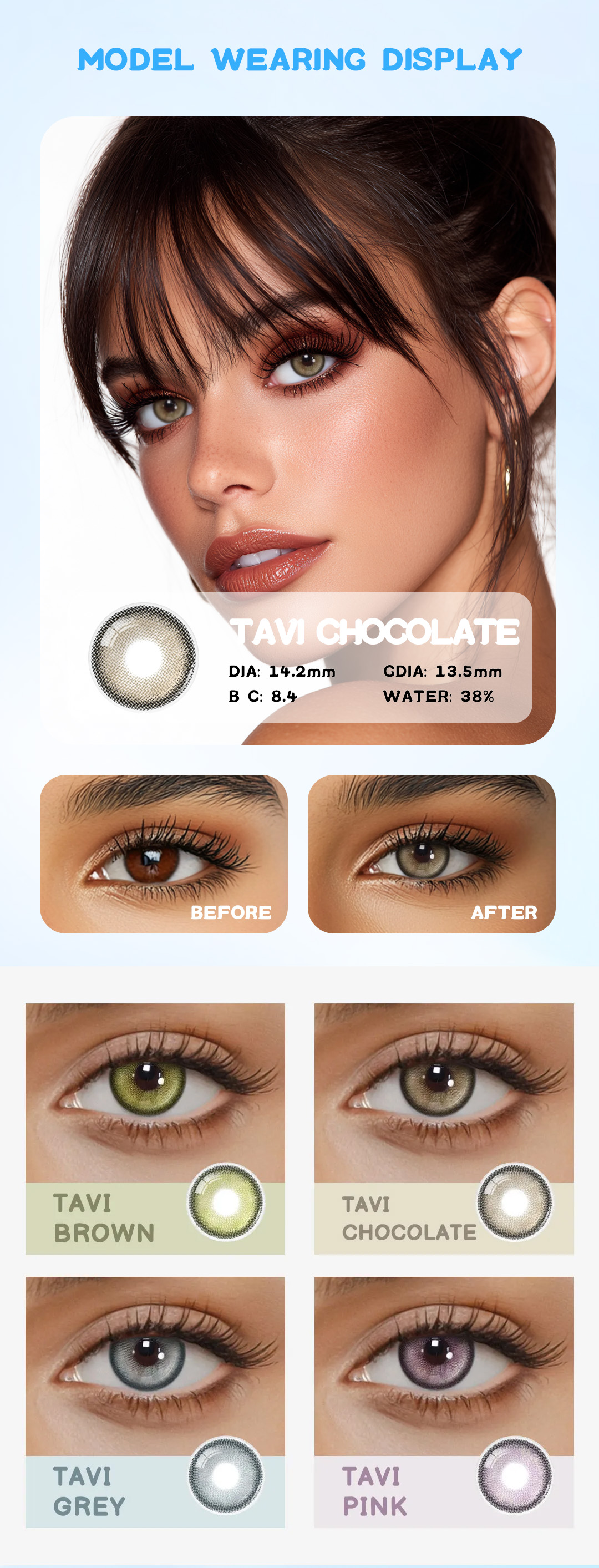 3. Scopri la ricchezza indulgente delle lenti a contatto Eyemua Tavi Chocolate, caratterizzate da una lussureggiante tonalità marrone cioccolato che porta calore e sofisticatezza ai tuoi occhi. Queste lenti creano un aspetto morbido e invitante che esalta la tua bellezza naturale con una sottile profondità e lucentezza. Lascia che Tavi Chocolate avvolga il tuo sguardo in un'eleganza senza tempo.