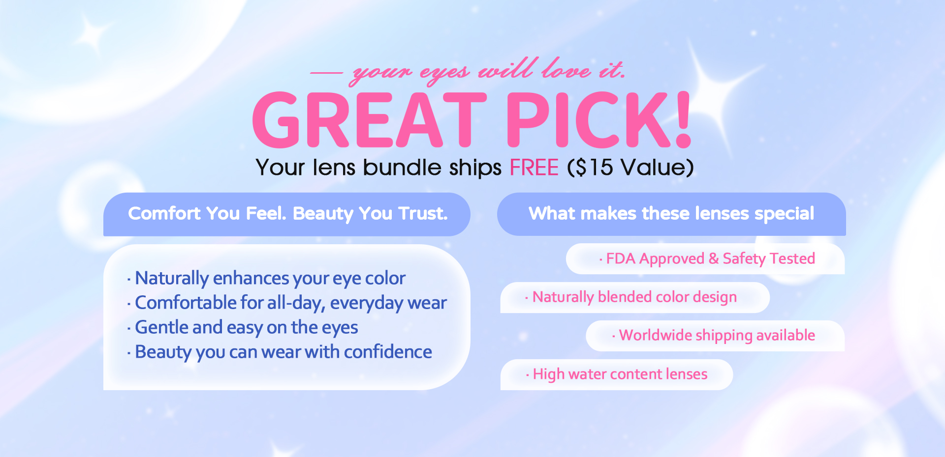 Buy 4 pairs sitewide, get 10pcs daily lenses free.