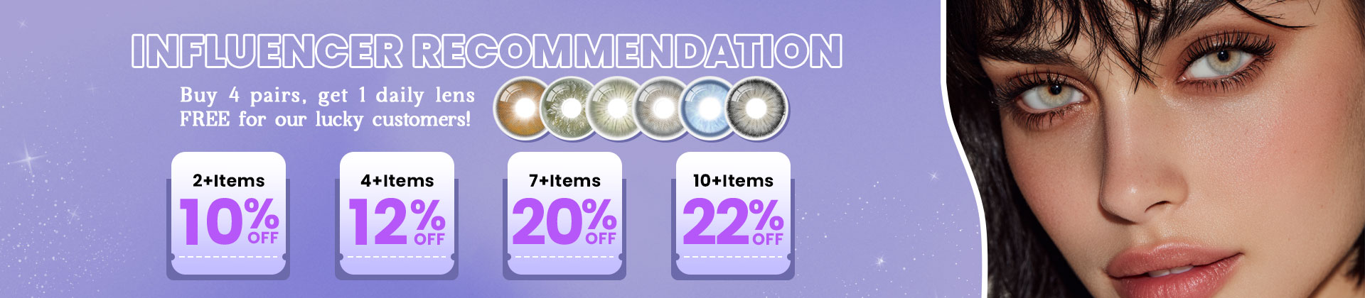 Buy 4 pairs sitewide, get 10pcs daily lenses free.
