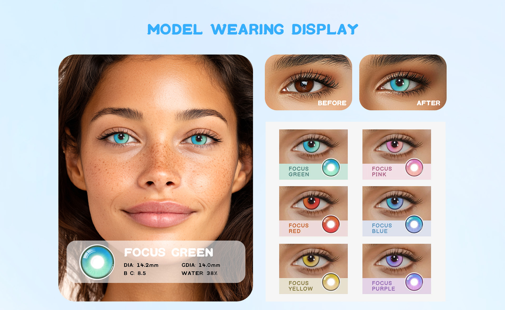 Bring your cosplay vision to life with Focus Green contact lenses, crafted to deliver a vivid and enchanting green hue that captures attention. These lenses enhance your character's persona, creating an eye-catching look that stands out in any setting. Dive into your next cosplay adventure with Focus Green and let your eyes shine with captivating brilliance!