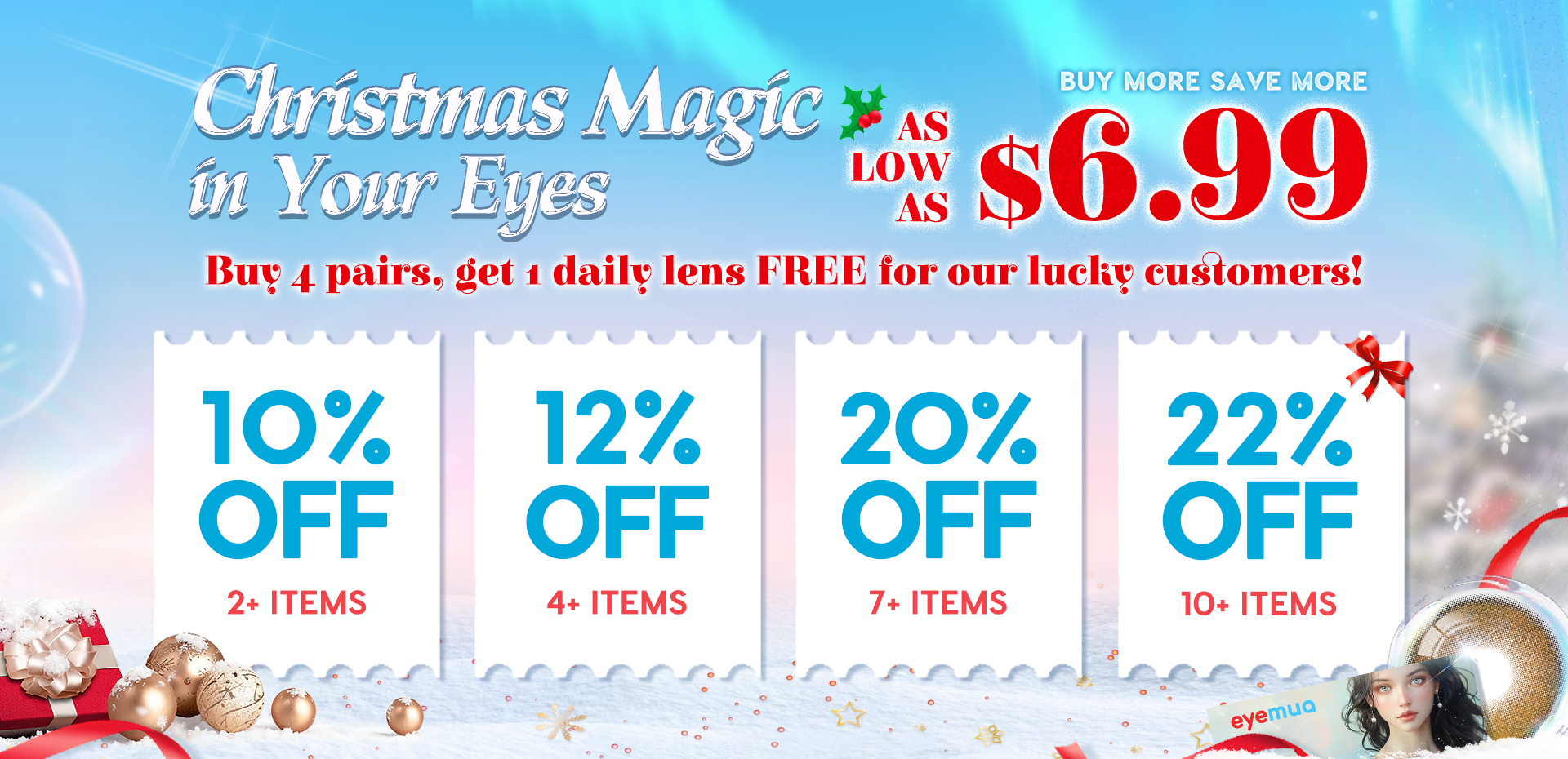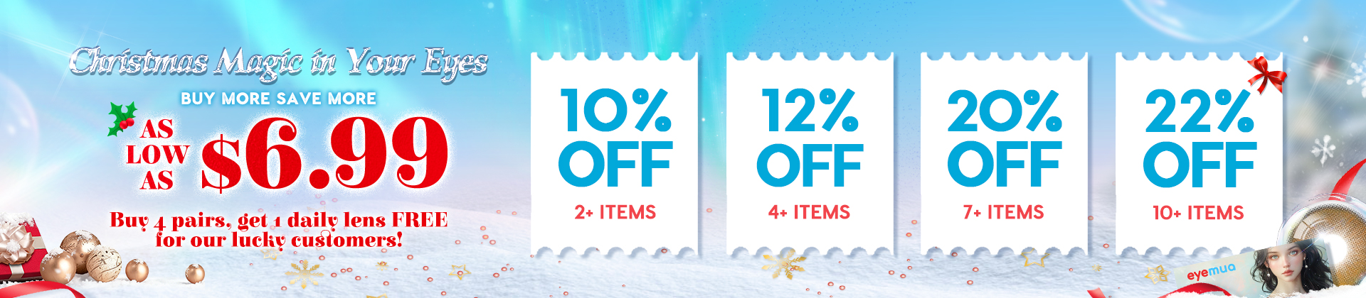 Buy 4 pairs sitewide, get 10pcs daily lenses free.