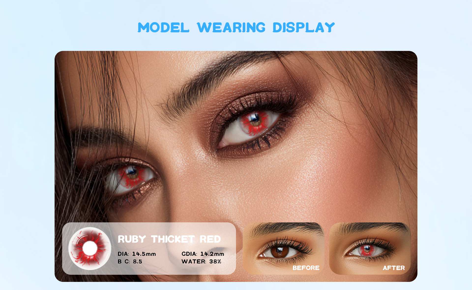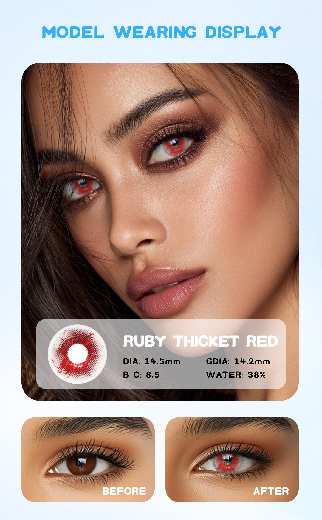 • Vibrant Red Tint: Adds a natural and eye-catching red color to your eyes.