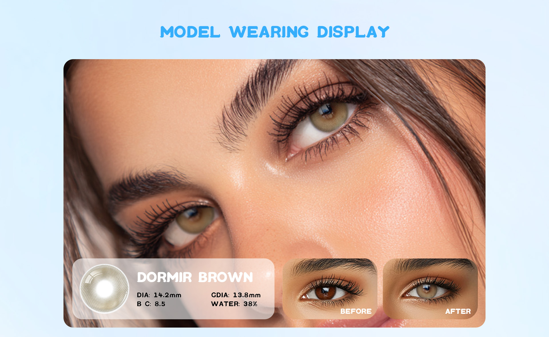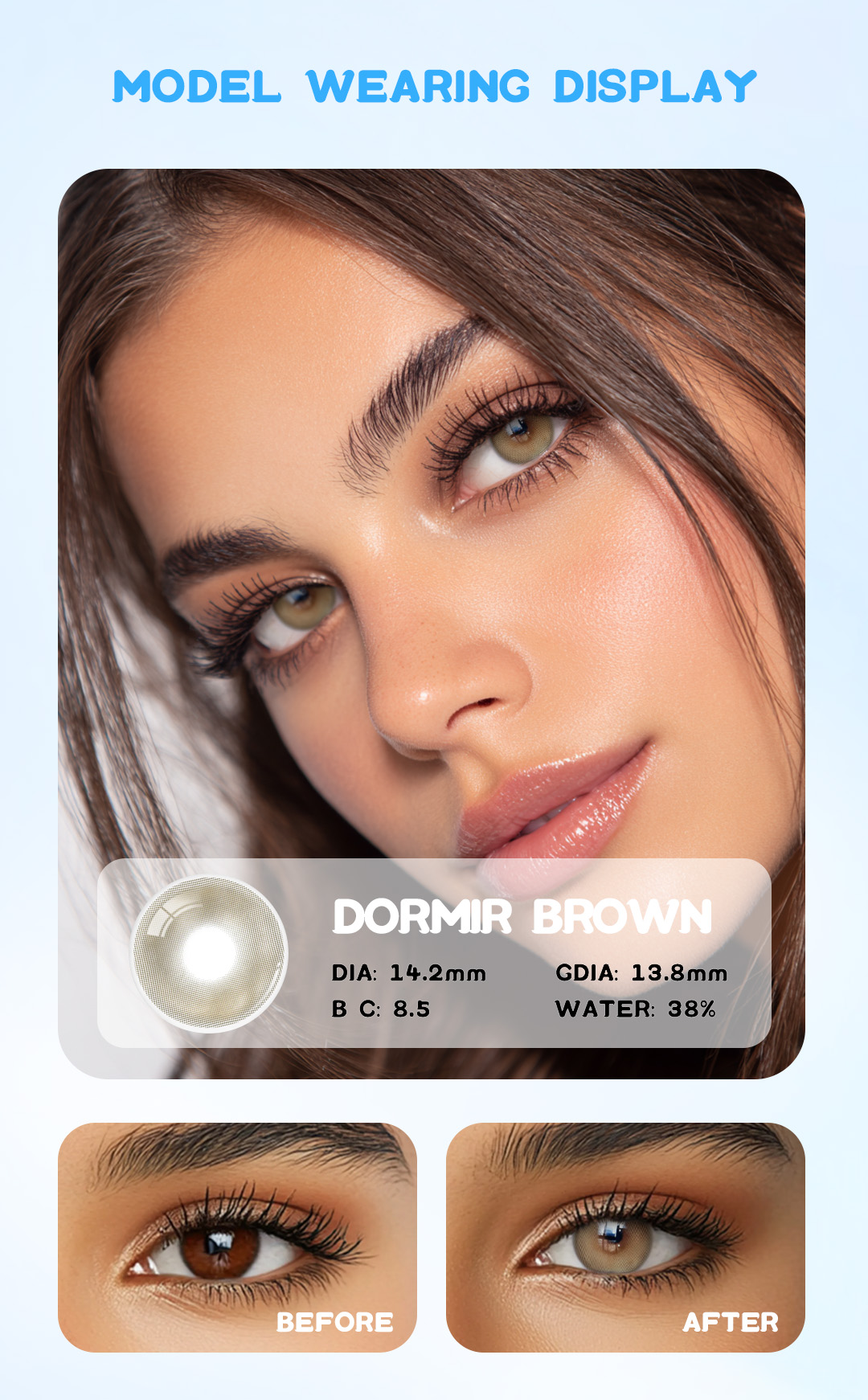3.Experience the warm elegance of Eyemua Dormir Brown contact lenses, designed in a rich, soft brown tone that blends seamlessly with your natural eyes. These lenses bring depth and warmth to your gaze, creating a gentle yet captivating look that’s perfect for everyday wear or special occasions. Let Dormir Brown enhance your charm and leave a lasting impression with eyes that exude comfort, confidence, and grace.