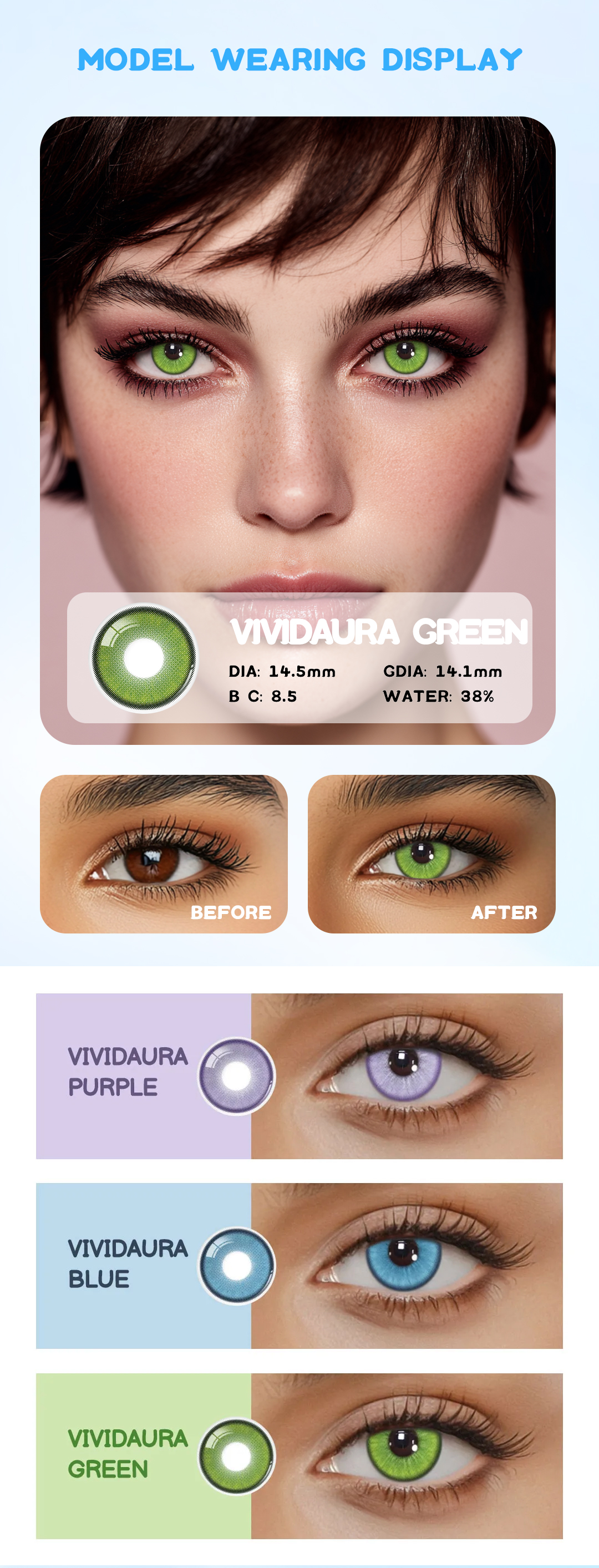 These lenses bring a rich, vivid green color to your eyes, enhancing your natural beauty with a powerful yet subtle effect that's perfect for daily wear.