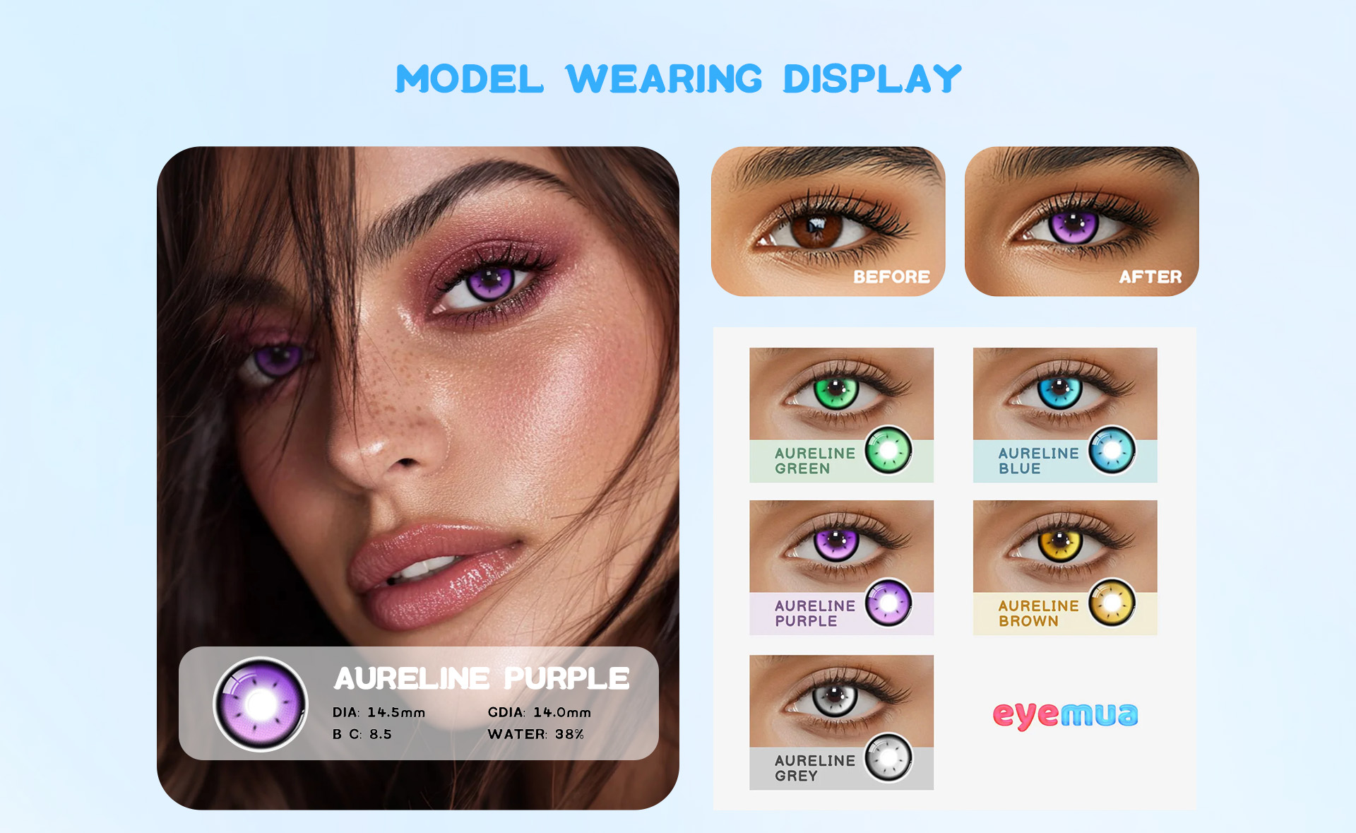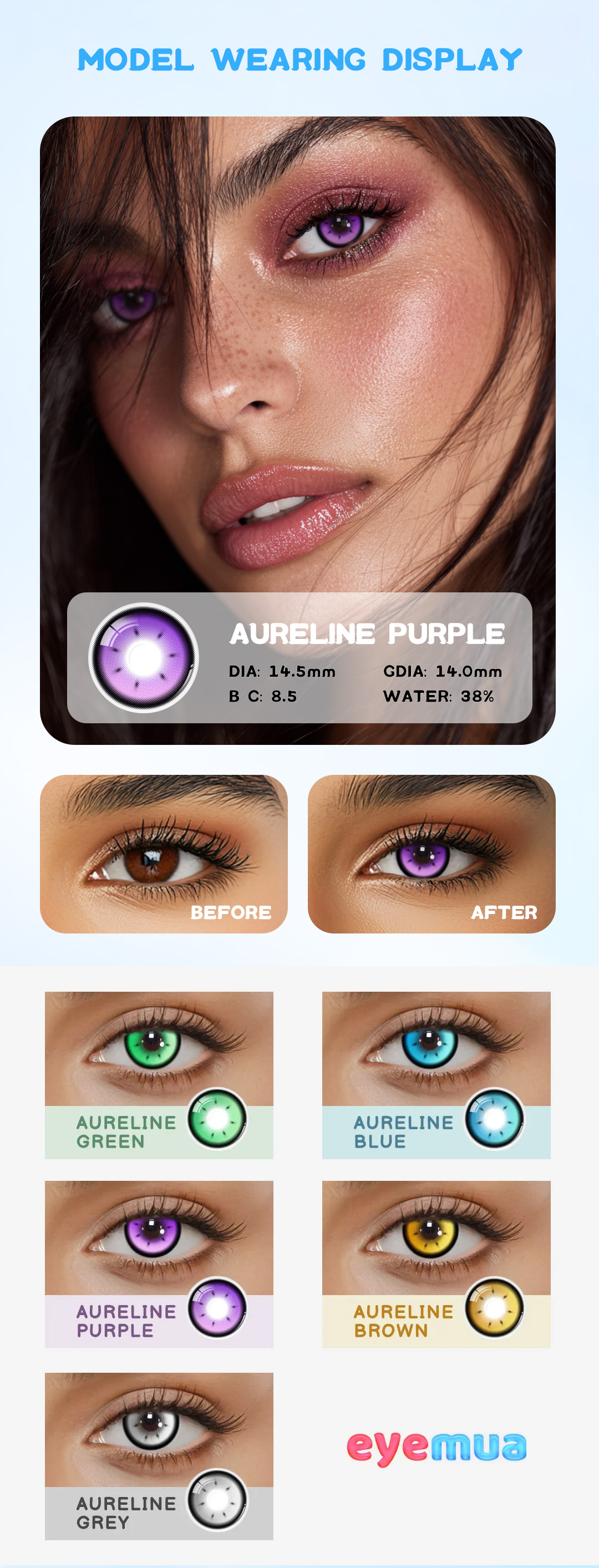 Eyemua Aureline Purple lenses showcase a deep, enchanted purple hue that adds a mystical touch to your eyes while keeping them comfortable and fresh.