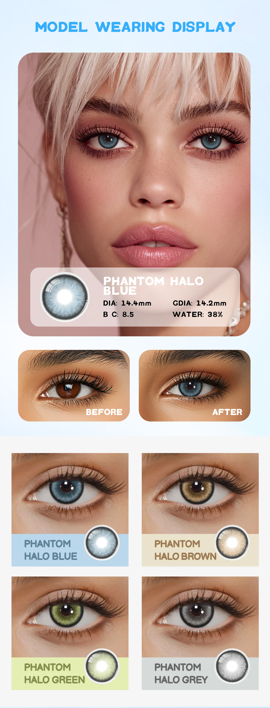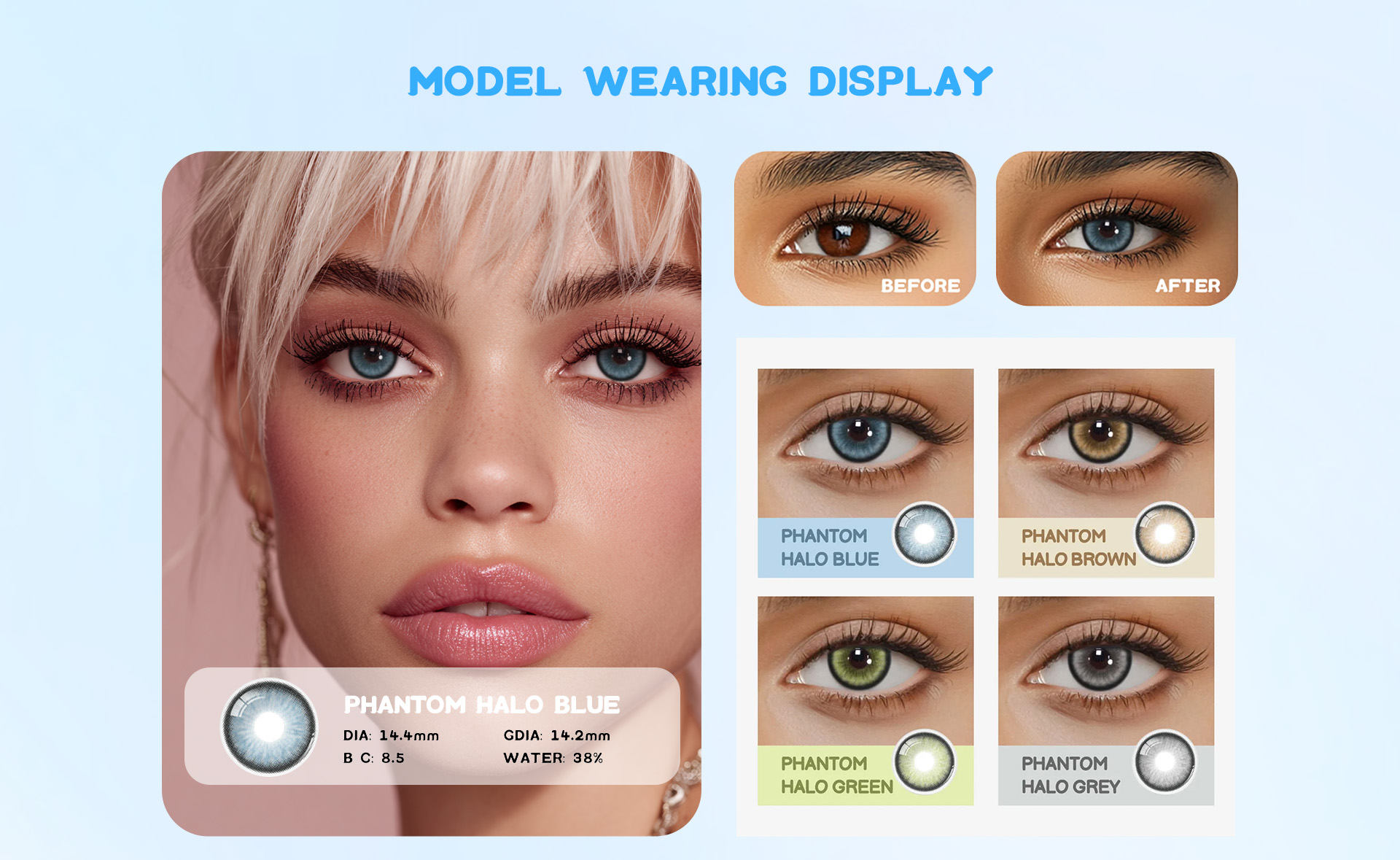 Crafted from lightweight, breathable materials, these lenses provide all-day comfort and optimal moisture retention. Perfect for daily use or special occasions, Eyemua Phantom Halo Blue delivers clarity, elegance, and a naturally radiant finish.